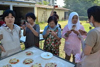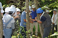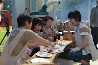 最初にピザ生地をこね発酵させた後、岐阜大学の北の敷地にある柳戸試験林に移動していただき、石田仁准教授の指導により、木の伐木やチェーンソーアートの見学などを行いました。その後前もって設営しておいた石窯を用いて、お好きな具をのせたピザを焼いて食べていただきました。非常に暑い中での公開講座になりましたが、生地から作ったピザの味は格別だったのではないかと思われます。次回もよろしくお願いします。