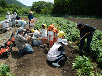 平成28年5月31日(火)に岐阜大学の附属保育園であるほほえみの園児たちが、フィールドセンターの北農場で栽培しているタマネギとジャガイモの収穫を行いました。最初にマルチというビニールの下で多くなっているタマネギを引っ張って抜いてもらいました。みんな楽しかったようで予定していた区画をすぐ抜き終わってしまいました。その後隣のジャガイモ畑でスコップで軽く掘り返したジャガイモを収穫しました。大きいものから小さいものまでありましたが、園児たちは楽しそうに全てを収穫していました。今回収穫した農作物は園での給食に利用してもらいます。